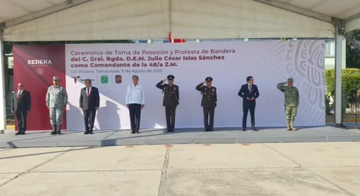 Ciudad Victoria, Tamaulipas.- Ante la presencia del gobernador, Américo Villarreal Anaya este día se llevó a cabo la toma de protesta del General de Brigada Diplomado del Estado Mayor, Julio César Islas Sánchez, como Comandante de la 48 zona militar.